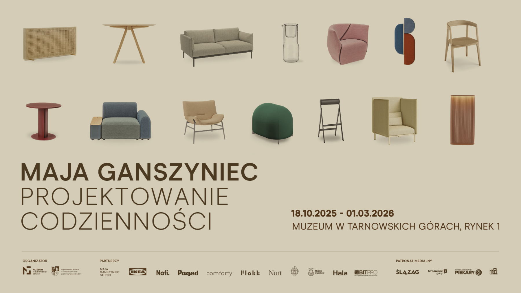 Wystawa prezentuje dorobek Mai Ganszyniec – cenionej, wielokrotnie nagradzanej, projektantki pochodzącej z Tarnowskich Gór. Od 2013 roku prowadzi własne studio, współpracując z markami takimi jak IKEA, Comforty, Duka, Ceramika Paradyż, Profim czy BMW. Jej projekty łączą funkcjonalność, estetykę i odpowiedzialność społeczną. Wyróżniają się prostotą form, naturalnymi materiałami i inspiracją skandynawskim modernizmem oraz japońskim wabi sabi. Projektantka tworzy zarówno meble, ceramikę i przedmioty codziennego użytku, jak i modułowe systemy czy stoiska wystawiennicze, konsekwentnie wdrażając zasady zrównoważonego rozwoju i gospodarki cyrkularnej. Ekspozycja ukazuje kilkunastoletnią twórczość artystki w szerokim ujęciu – od produktów masowych po unikatowe realizacje – podkreślając rolę dizajnu w kształtowaniu naszej codzienności.